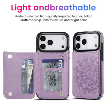 Custodia per Telefono in Pelle PU Business con Motivo Mandala per iPhone 17 Pro Max Viola Nero Marrone con Chiusura a Doppia Fibbia
